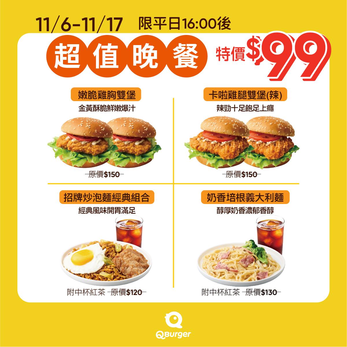 11/6~11/17 平日 16:00 後限定超值晚餐只要$99!