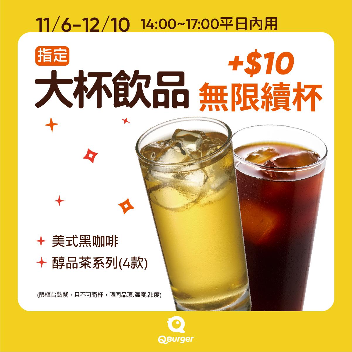 平日 14:00~17:00 內用指定飲品加10元即可「無限續杯」!