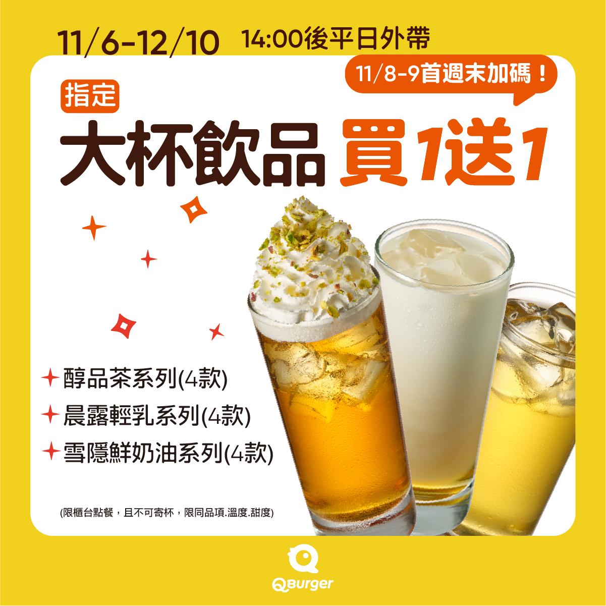 平日 14:00 後外帶指定大杯飲品享「買1送1」